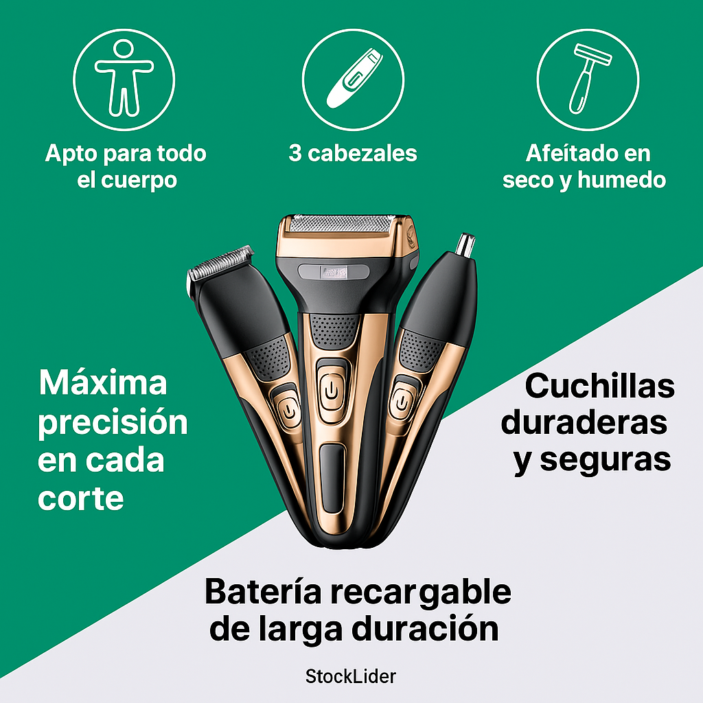 ✅ 3 Cabezales Profesionales (Cabello + Barba + Nariz)