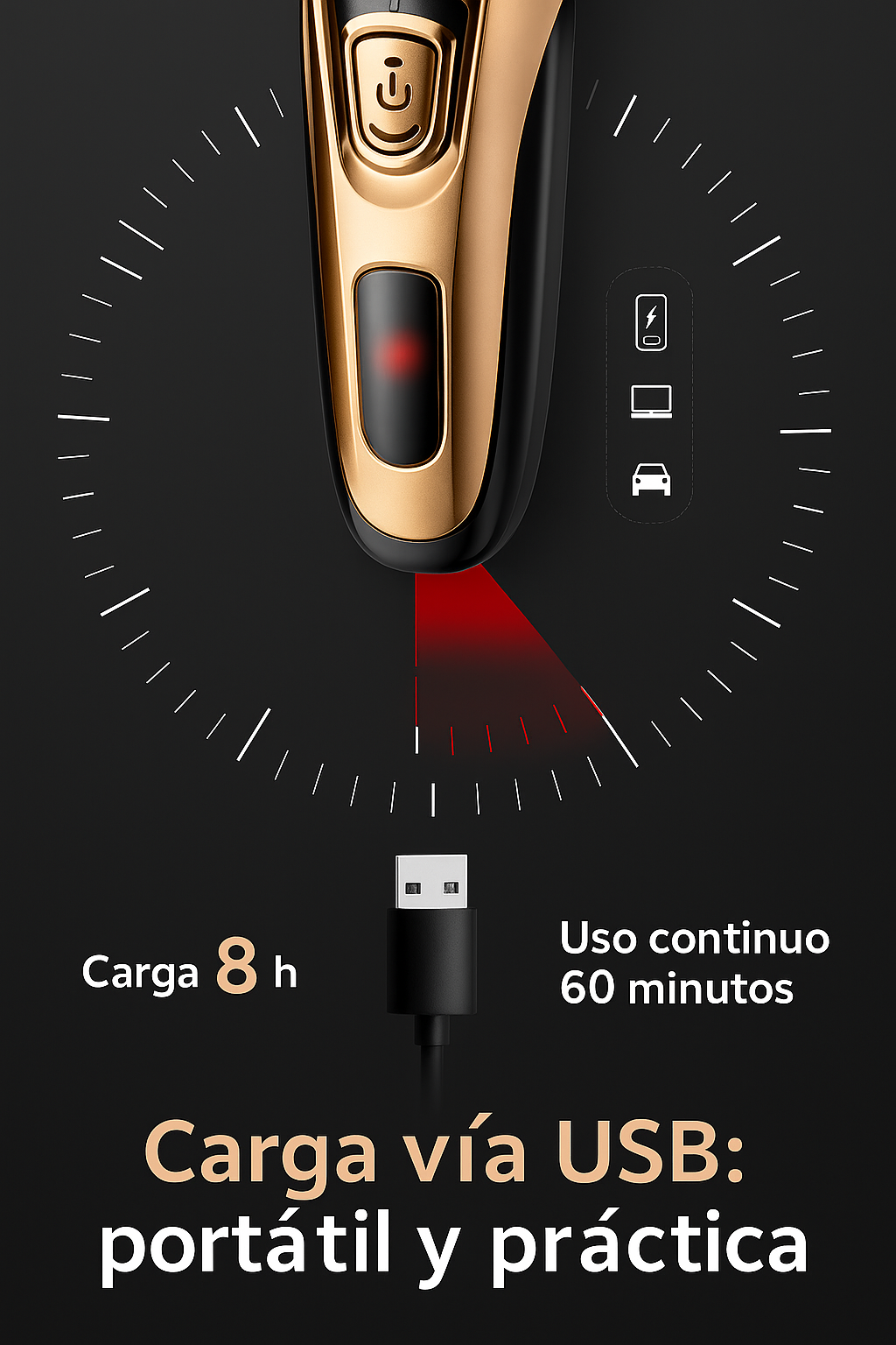 🔋 Carga en Cualquier Lugar Olvídate de esos cargadores gigantes que siempre pierdes. Carga USB significa que puedes usar el cargador del celular, powerbank, laptop... ¡Perfecto para viajes, gimnasio o esa escapada de fin de semana!